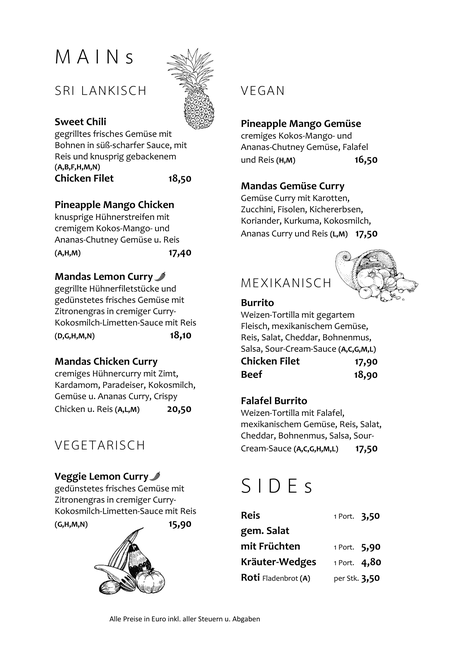 Von 13:30 - 19:30 gibt's die Speisen der Mandas À-la-carte Karte gerne auch zum Mitnehmen.